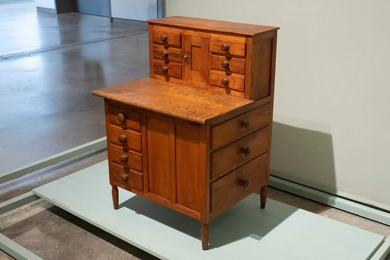 Shaker seamstresses had to make, maintain, and repair enormous amounts of clothing for their community. That gave rise to the creation of “sewing desks” at which two women could work with all the needlework tools and supplies needed in the drawers and compartments.
