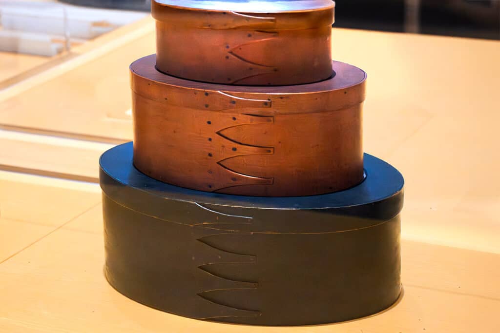 One of the household items iconic of Shaker craft is the oval pantry box, a precision fitted round bentwood contain that is difficult to create.