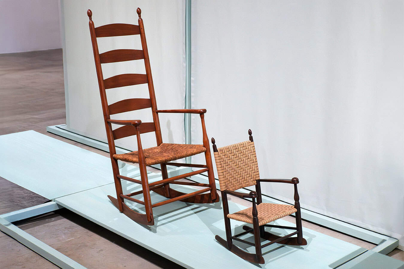 Adult and children’s rocking chairs like these were mass produced by hand in the Shaker proto-assembly-line system that enabled them to scale production without losing quality.