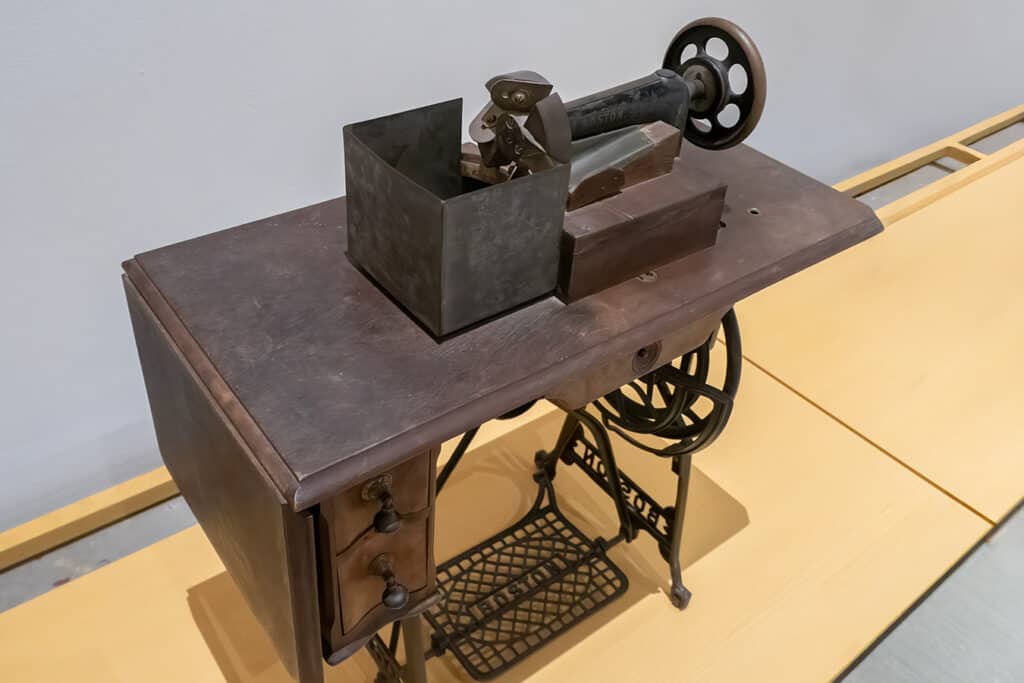 Marketed as both a Shaker candy and a medicinal digestive aid, flag root was made from the fibrous root of the sweet flag plant. Massive amounts had to be sliced thinly before being boiled in thick sugar syrup. The shakers repurposed foot-powered sewing machines as flag root cutters, greatly speeding up the production process.