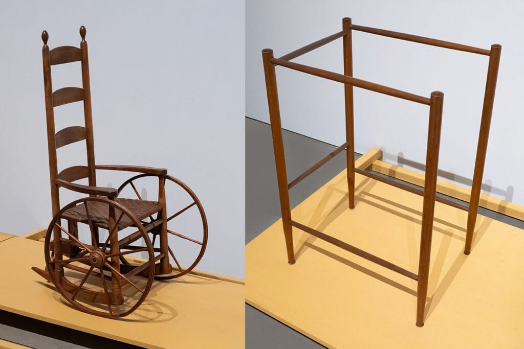 Similarly, handmade wheel chairs and walkers for frail elders were designed and crafted with the same attention to detail and spartan elegance as other Shaker furniture and household objects.
